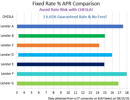 The Connecticut Higher Education Supplemental Loan Authority (CHESLA) supports and subscribes to the Connecticut Financial Aid Code of Conduct (click here to view/download the code). Please note the following disclosure(s):